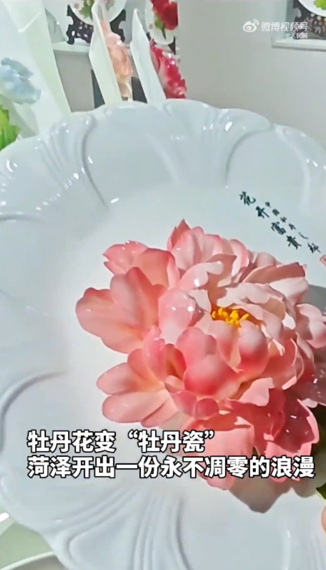 牡丹花变“牡丹瓷”,开出一份永不凋谢的浪漫人民网微博 06:55撮一块白泥,捻一片花瓣,经过1300℃高温淬炼、四次烧制,一朵长期不变色的牡丹瓷花“盛开”在眼前。花瓣薄如蝉翼,花蕊以假乱真,每一朵牡丹瓷花都独一无二。如今,这份可长期保存的“牡丹花”,正走进千家万户。