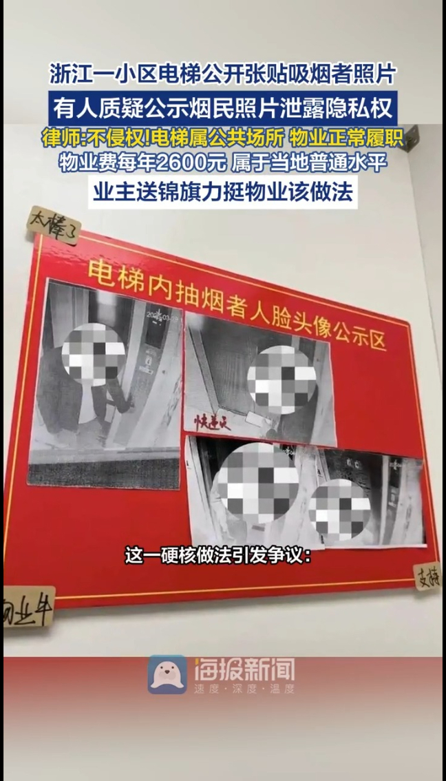 浙江一小区电梯里公开张贴吸烟者照片,这一硬核做法引发争议:有人质疑侵犯隐私,也有人拍手叫好。这是怎么回事?