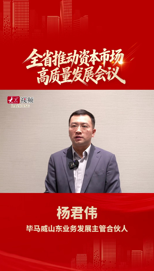 杨君伟:助力更多山东企业登陆境内外资本市场大众新闻 04-16原创4 月15日,全省推动资本市场高质量发展会议召开。会议通报全省资本市场发展情况,部署全省资本市场工作。会议过后,就毕马威将如何助力山东资本市场发展的相关问题,记者对毕马威山东业务发展主管合伙人杨君伟进行了采访。(大众新闻记者 龙女 王新蕾 都亚男 曹佳子 刘佳男)