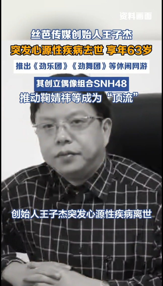 主播说丨丝芭传媒创始人王子杰 突发心源性疾病去世,享年63岁