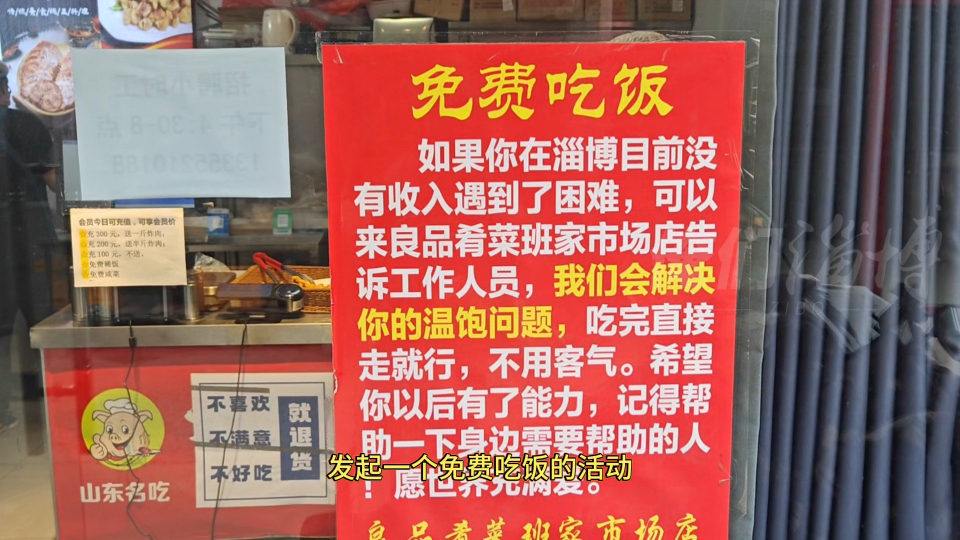 俺们淄博|吃完就走,别客气!这位老板的承诺,很暖心 17:22 原创大众新闻·鲁中晨报 微信扫码扫码下载客户端自从淄博良品肴菜店老板宋刚救助一名落魄男青年后,便在自家三家门店发起免费吃饭公益活动。他承诺,在淄博遇到困难时,可进店免费就餐,无需多言,吃完就走。他更希望受助者日后有能力时,将这份爱心传递下去。(大众新闻·鲁中晨报记者 张培)
