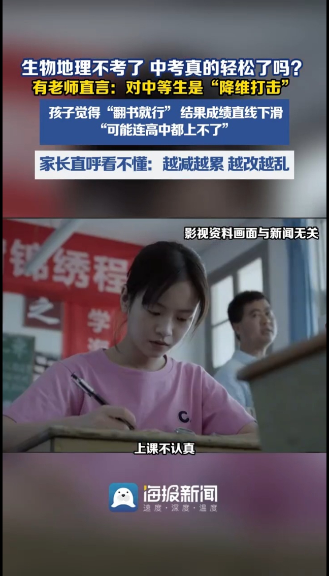 中考大震荡!多地突然官宣:生物、地理退出中考总分,中考真的轻松了吗?家长直呼看不懂!