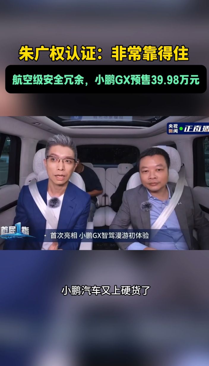朱广权:非常靠得住!小鹏GX预售39.98万元大众报业·齐鲁壹点 04-164月15日,小鹏GX重磅亮相并正式开启预售,新车带来纯电和超级增程两个版本,预售价39.98万元。作为小鹏汽车2026年度开篇重磅力作,小鹏GX汇聚了集团全领域前沿科技,基于SEPA 3.0架构打造,融合了多物种优势,与飞行汽车、人形机器人IRON等具身智能体采用同源核心架构,是面向L4时代打造的科技大成之作。