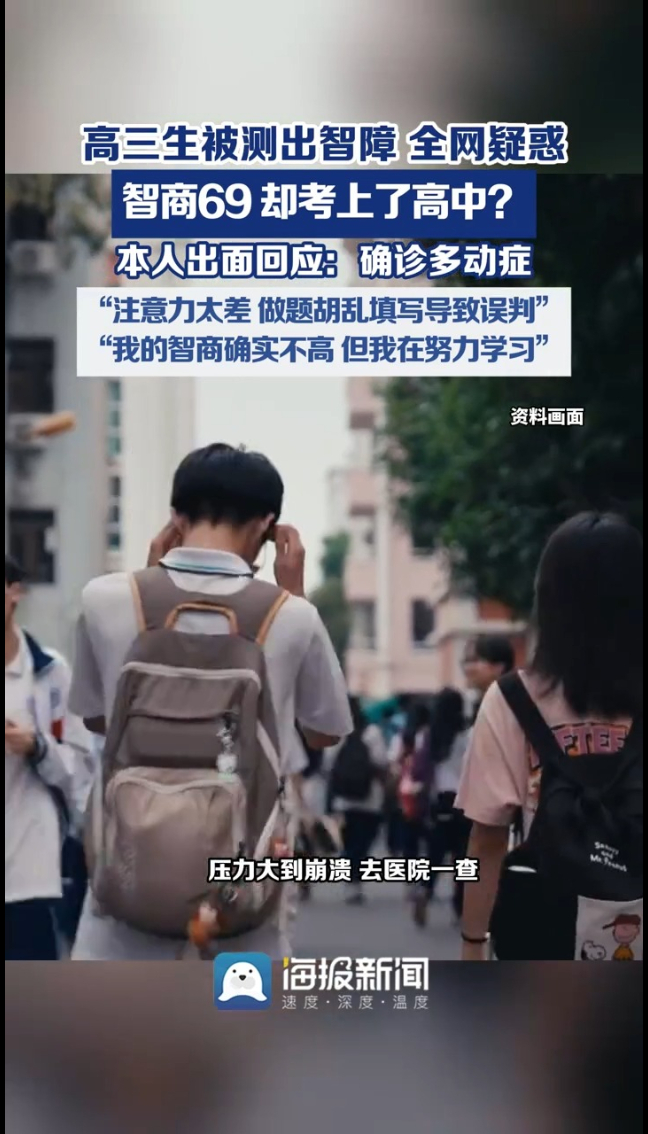 主播说 | 高三生被测出智障,全网疑惑,智商69,却考上了高中?本人出面回应:确诊多动症