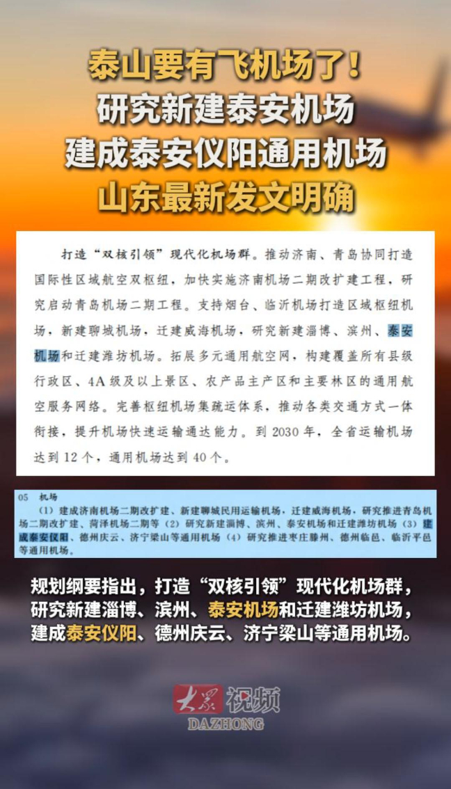 泰山要有飞机场了!研究新建泰安机场,建成泰安仪阳通用机场!山东最新发文明确