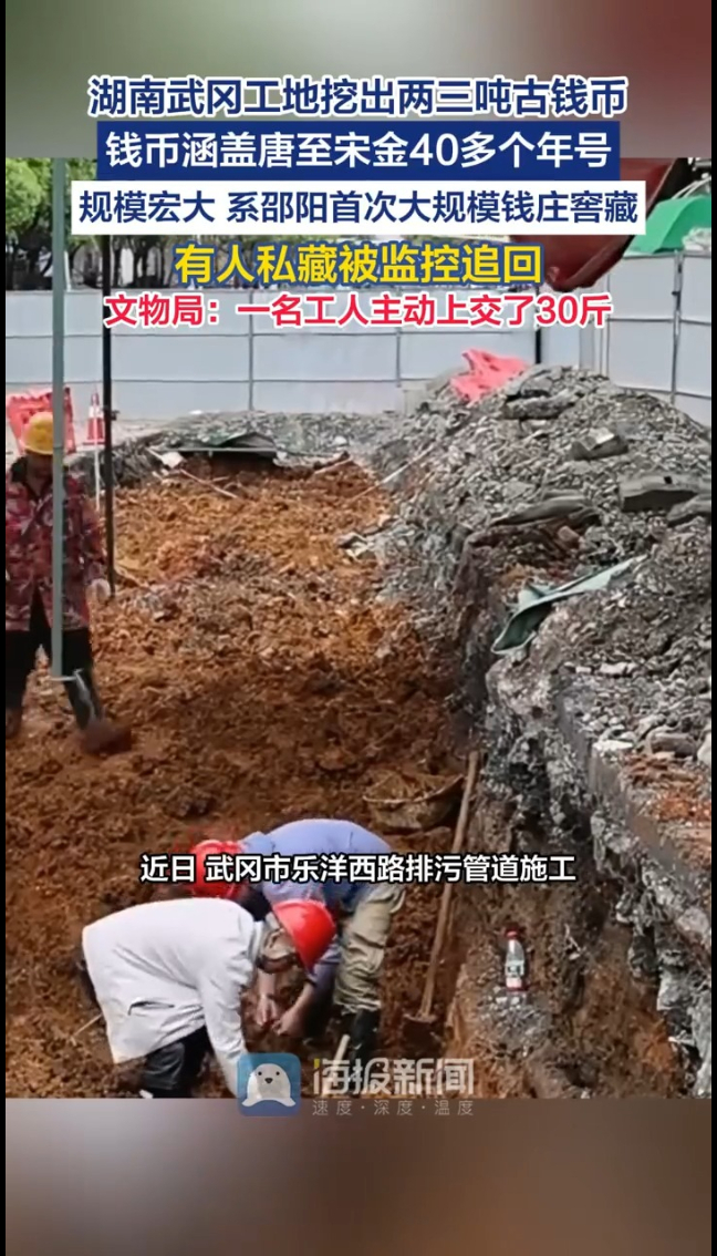 湖南工地挖出两三吨古钱币,居然有人想偷偷带走藏匿!