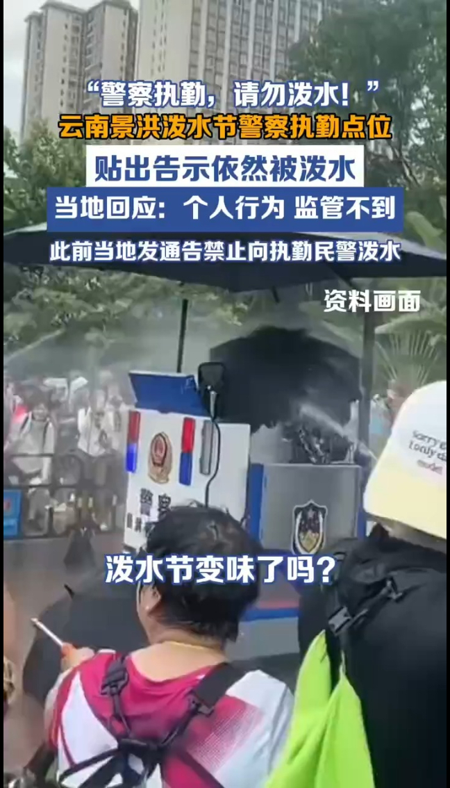 主播说丨云南景洪泼水节警察执勤点位 贴出告示依然被泼水 当地回应:个人行为,监管不到