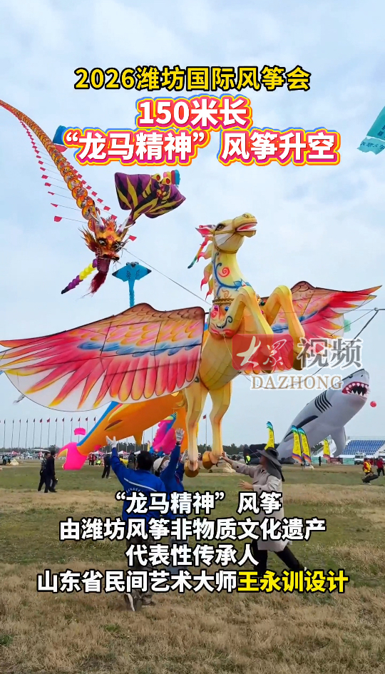 150米“龙马精神”风筝在潍坊震撼飞天大众新闻 18:15原创4月16日,150米长的“龙马精神”风筝,在潍坊滨海成功升空。 潍坊风筝非物质文化遗产代表性传承人、山东省民间艺术大师王永训打造的这只“空中长龙”,融合了飞马的矫健与蜈蚣的灵动,海风一吹,便气势如虹地“飞”上了蓝天。现场掌声不断,围观的中外风筝爱好者纷纷举起手机、相机,成为今年风筝会名场面。(大众新闻记者 李钦鑫 蓝天 张蓓 通讯员 孙梦柯 邵君宇 于帅帅)