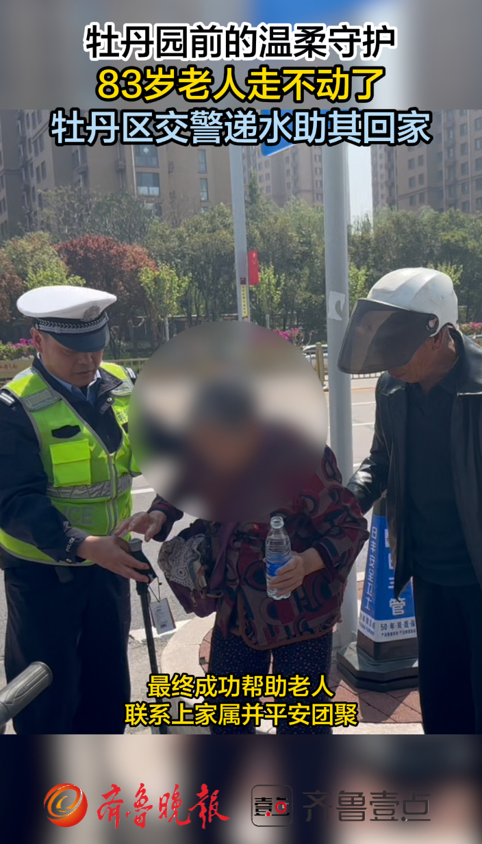 83岁老人走不动了,牡丹区交警递水助其回家齐鲁晚报·齐鲁壹点客户端 昨天21:43原创齐鲁晚报·齐鲁壹点 王玉康 通讯员 崔国桐 牡丹花会期间,牡丹区交管大队南城中队在牡丹园执勤时,遇到一位 83 岁的老太太因身体不适、体力不支,无法步行回家。执勤民辅警立即上前安抚老人,为老人递上饮用水解渴,随后耐心询问老人的家庭住址与家人联系方式,最终成功帮助老人联系上家属并平安团聚。