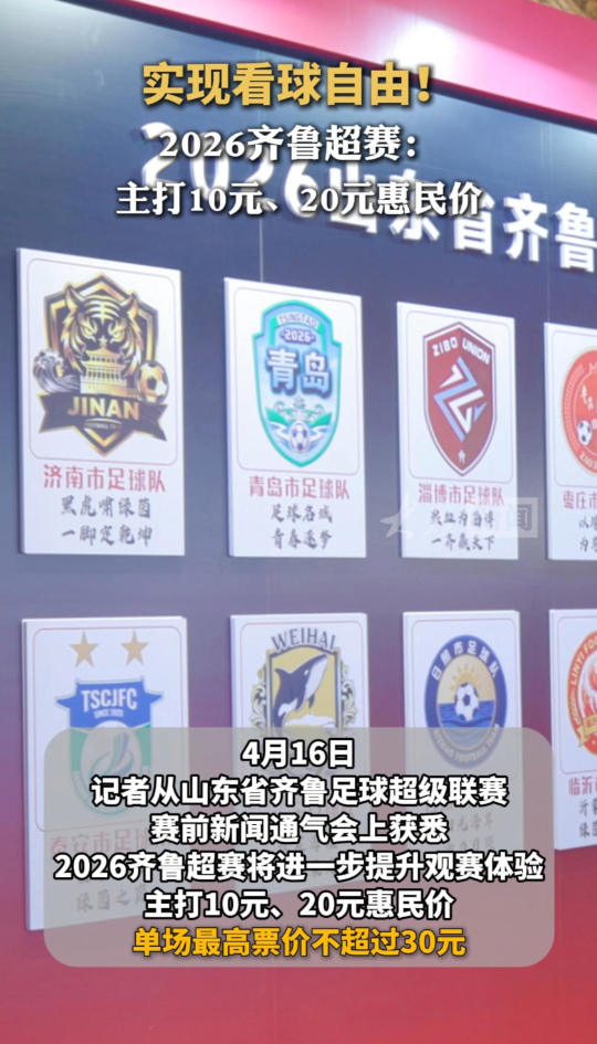 4月16日,记者从山东省齐鲁足球超级联赛赛前新闻通气会上获悉,2026齐鲁超赛将进一步提升观赛体验。今年齐鲁超赛主打10元、20元惠民价,单场最高票价不超过30元。此外,球迷使用山东省社保卡购票还可享满10元减5元优惠,补贴总量30万张。使用建行信用卡购票可享8折优惠,最高优惠16元。通过云闪付支付票款,随机立减1-10元,有机会享0元观赛。观众在比赛现场扫码山东省体彩中心微信小程序,还可领取2元体彩超级大乐透电子体验券。(大众新闻记者 荆新年 宫小昀 王建)