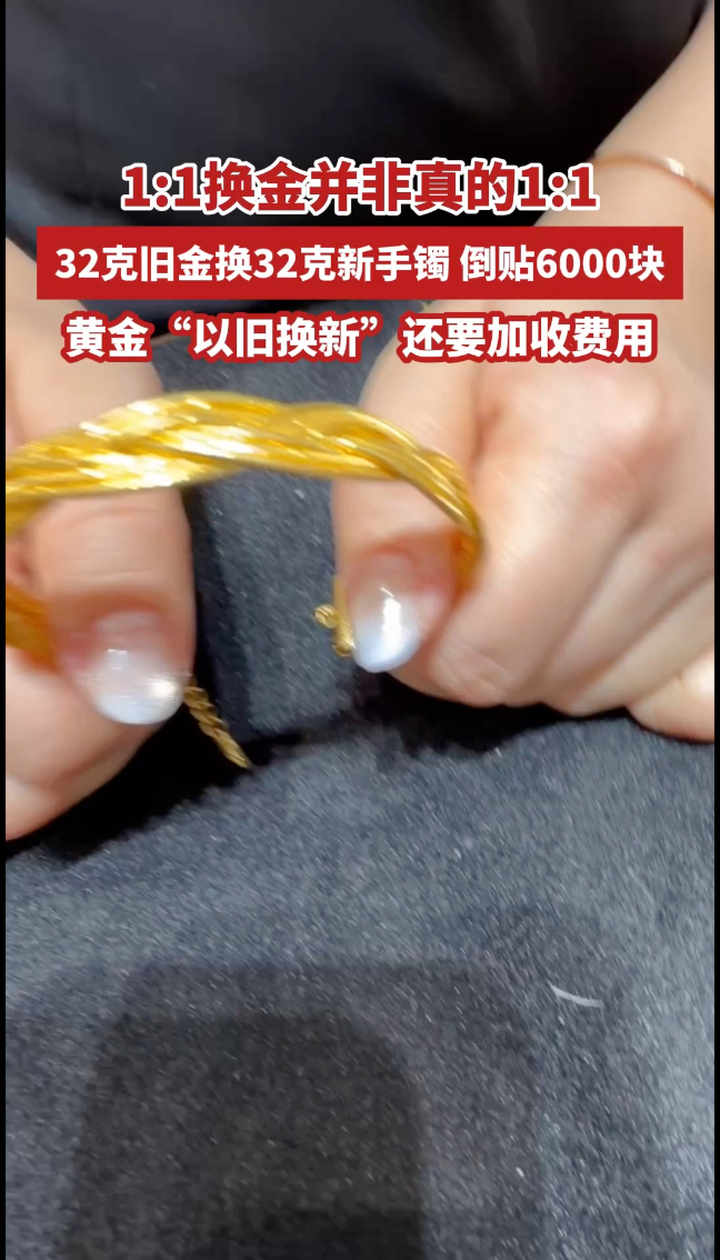 消费调查 | 1:1换金并非真的1:1,32克旧金换32克新手镯倒贴6000块,黄金“以旧换新”还要加收费用