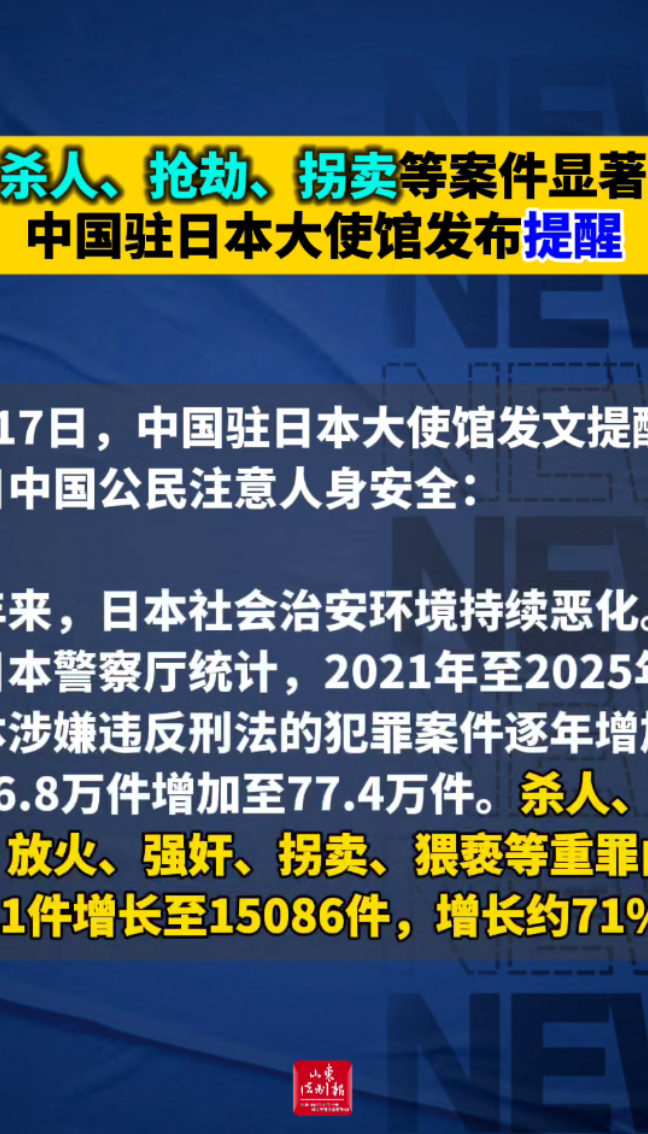 日本杀人、抢劫、拐卖等案件显著增加,中国驻日本大使馆发布提醒!