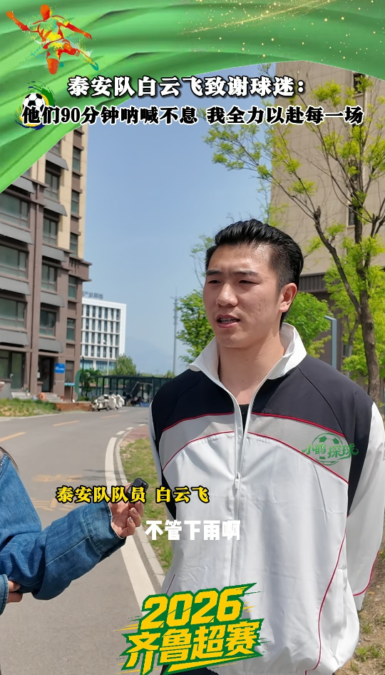 齐鲁超赛来了|泰安队白云飞:感谢球迷!我将全力以赴每一场!大众新闻 11:47独家4月18日(本周六)晚7点,2026年中国体育彩票山东省齐鲁足球超级联赛开幕式暨揭幕战将在泰山体育场开幕。比赛前夕,大众新闻记者独家专访揭幕战东道主泰安队球员白云飞。这位02年出生的年轻小伙子,面对镜头时,最想感谢广大球迷们的支持,直言自己将全力以赴每一场!(大众新闻记者 宋亚鲁 史歌 王鹤颖 李培乐 实习生 艾文静 策划 王建)