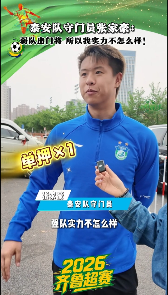 齐鲁超赛来了|泰安队张家豪:弱队出门将,所以我实力不怎么样!大众新闻 11:47独家4月18日(本周六)晚7点,2026年山东省齐鲁足球超级联赛开幕式暨揭幕战将在泰山体育场开幕。比赛前夕,大众新闻记者独家专访揭幕战东道主泰安队球员张家豪,他在队内担任守门员。“弱队出门将”是足球界流传甚广的一句俗语,意指在整体实力较弱的球队中,往往容易涌现出表现优异的门将。对此他笑称:我实力不怎么样!(大众新闻记者 王鹤颖 宋亚鲁 史歌 李培乐 实习生 艾文静 )