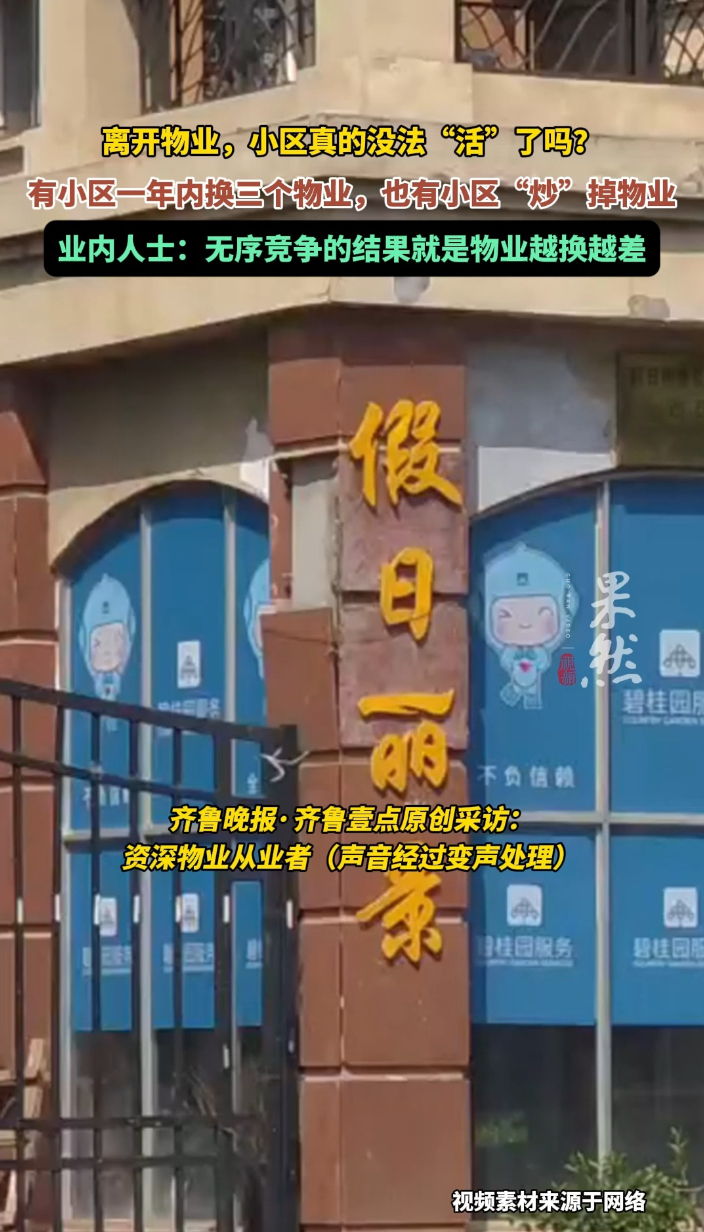 果然视频|济南一小区1年3换物业,业内:无序竞争容易越换越差齐鲁晚报·齐鲁壹点客户端 11:42原创3月底,碧桂园物业入驻济南市历下区假日丽景花园小区。这也意味着,这个有着15年房龄的小区,一年内迎来第三任物业。有业内人士直言,这场席卷全国的物业撤场潮,不是简单的“服务差跑路”,而是整个行业底层逻辑崩塌的结果。门槛的消失,带来的是无序竞争,物业担心干不久被换掉,物业公司就抓紧时间回笼资金:工程报价虚高、挪用公共收益等,种种乱象由此而生,最终的结果可能就是物业越换越差。