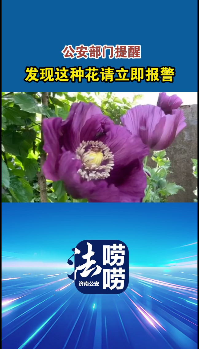 济南公安提醒您,发现这种花请立即报警!坚决遏制非法种植罂粟等毒品原植物;严禁在食品中添加罂粟壳及非法制品。