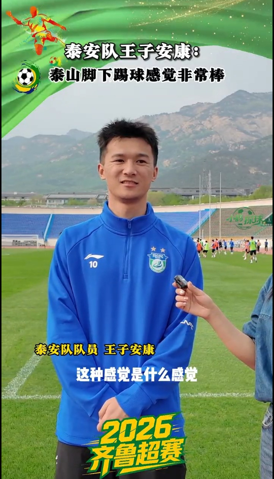 齐鲁超赛来了|泰安队王子安康:泰山脚下踢两万人的场,棒!大众新闻 16:31独家4月18日(本周六)晚7点,2026年山东省齐鲁足球超级联赛开幕式暨揭幕战将在泰山体育场开幕。这个建在泰山脚下的体育场,提起来是啥感觉?大众新闻记者独家专访揭幕战东道主泰安队球员王子安康,听听他怎么说。(大众新闻记者 王鹤颖 宋亚鲁 史歌 李培乐 实习生 艾文静)