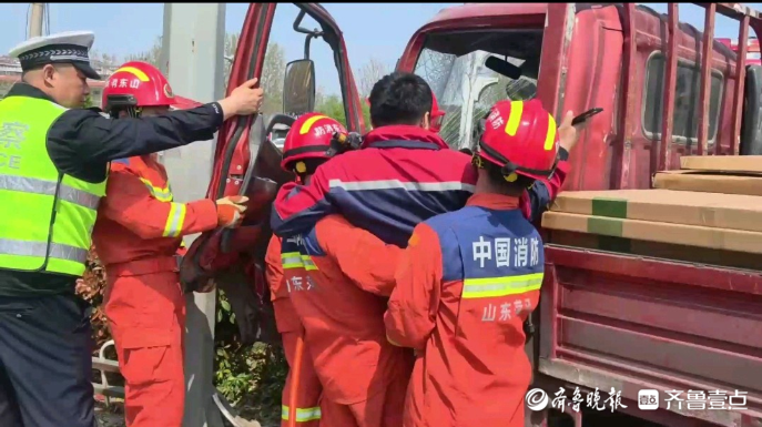 果然视频|货车拐弯失控撞上路灯杆,消防员到场破拆施救齐鲁晚报·齐鲁壹点客户端 18:00原创近日,菏泽,一货车拐弯时失控撞上路边金属灯杆,有人被困。接到求助,菏泽消防立即到场进行扩张作业,迅速将男子从变形驾驶室中救出,并将其交由120送往医院。 (齐鲁晚报·齐鲁壹点记者 尉伟 通讯员 郑启山)