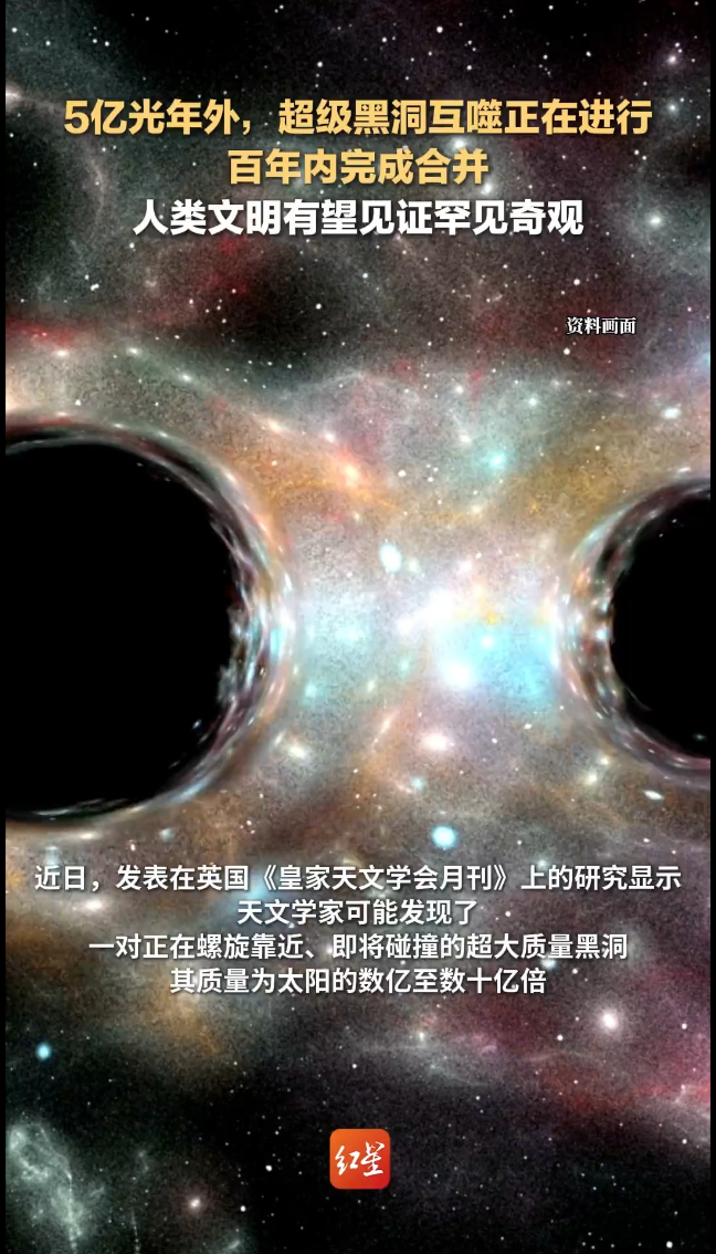 5亿光年外,超级黑洞互噬正在进行,百年内完成合并 人类文明有望见证罕见奇观