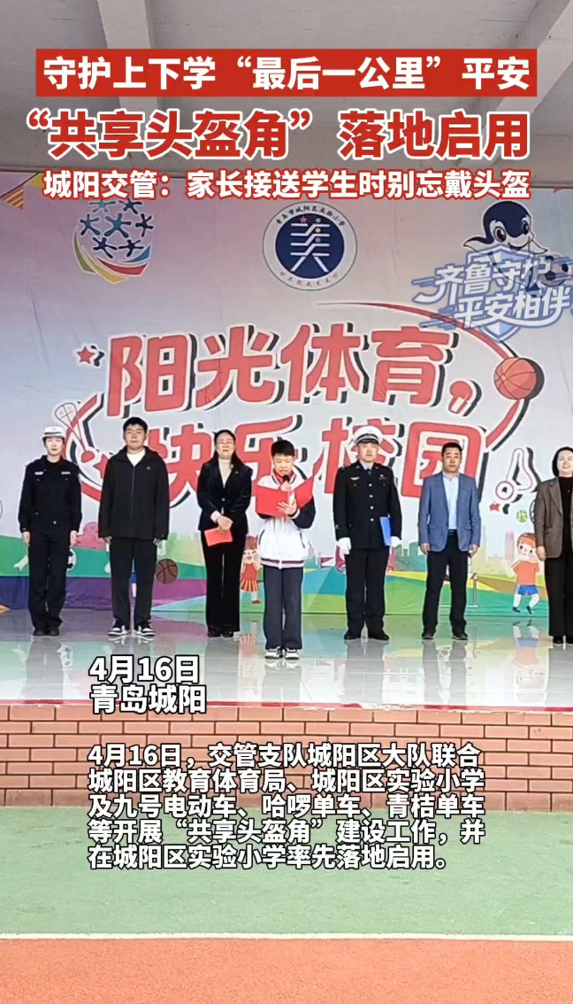 守护上下学“最后一公里”平安,“共享头盔角”在青岛落地启用