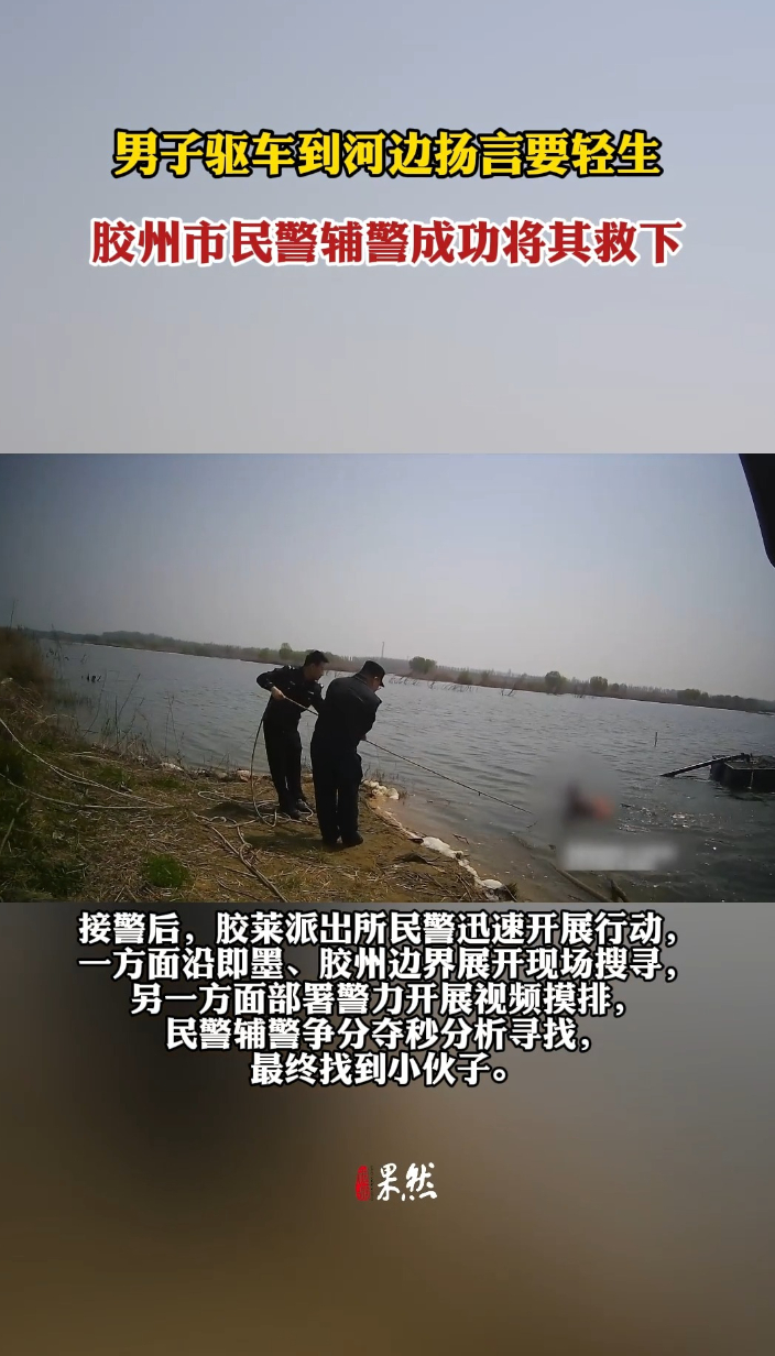 果然视频丨男子驱车到河边要轻生,胶州市民警辅警成功将其救下