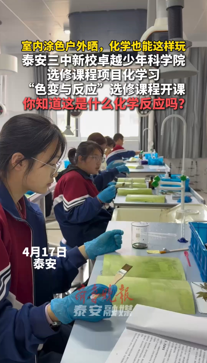 果然视频|泰安三中新校卓越少年科学院选修课程项目化学习,“色变与反应”选修课程开课大众报业·齐鲁壹点 昨天23:41齐鲁晚报·齐鲁壹点 徐慧 4月17日,泰安三中新校卓越少年科学院选修课程项目化学习开课,涵盖科创、人文、艺术、运动、实践六大领域18门课程。