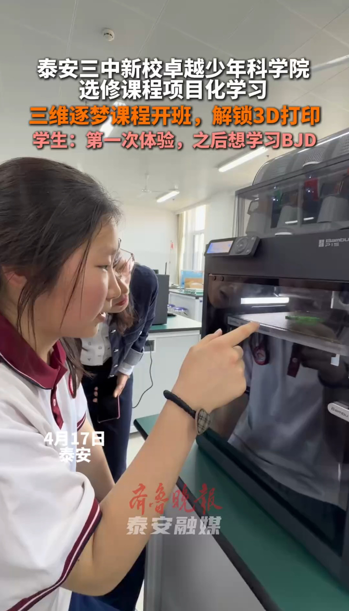 果然视频|泰安三中新校卓越少年科学院选修课程项目化学习,三维逐梦课程开班,解锁3D打印大众报业·齐鲁壹点 昨天23:40齐鲁晚报·齐鲁壹点 徐慧 4月17日,泰安三中新校卓越少年科学院选修课程项目化学习开课,涵盖科创、人文、艺术、运动、实践六大领域18门课程。