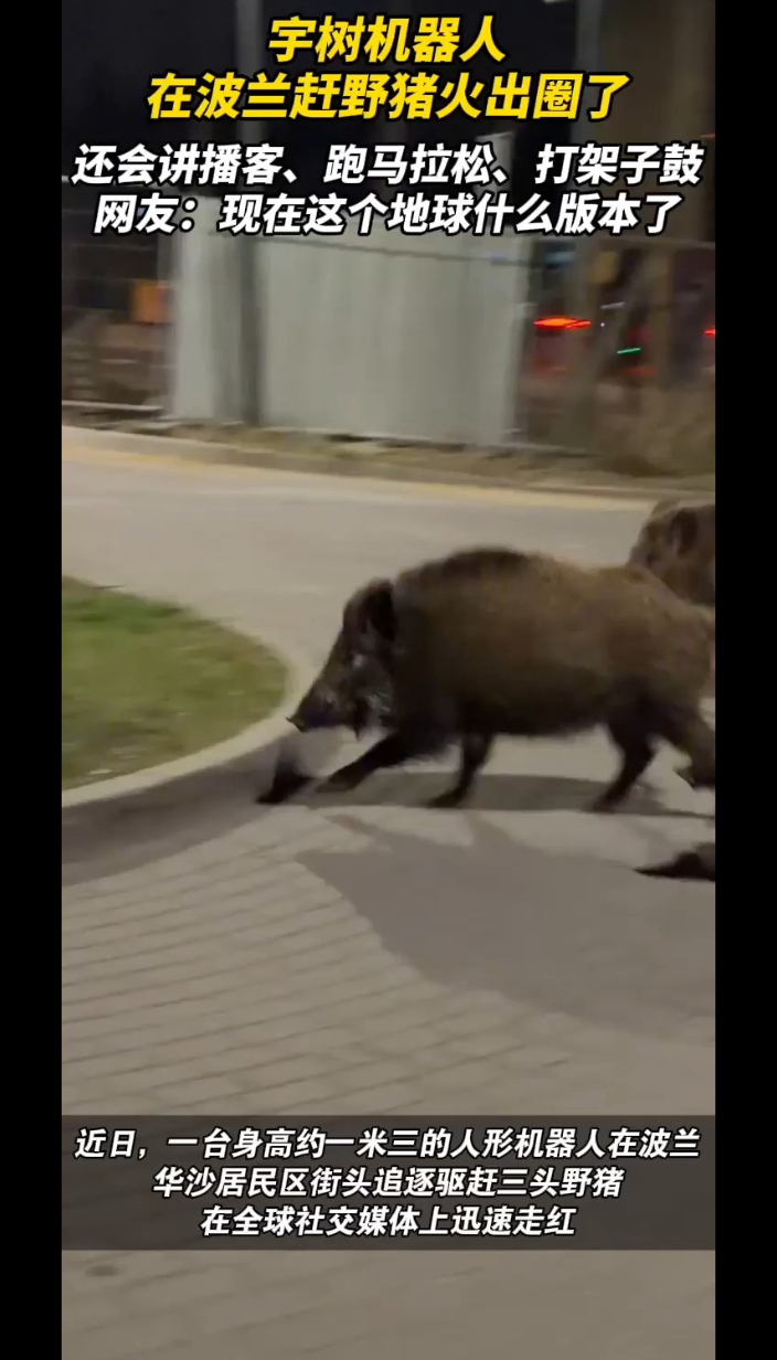 中国人形机器人“驱赶野猪”在波兰走红,网友:地球进化到什么版本了?上观新闻 07:34近日,一台身高约一米三的人形机器人在波兰华沙居民区街头驱赶野猪的视频在全球社交媒体上迅速走红。这台被波兰网友称作“爱德华”的机器人由中国杭州宇树科技研发生产,由波兰MERA公司引进,并安装了该公司的“MERA OS”机器人操作系统,如今成为波兰新晋“网红”。