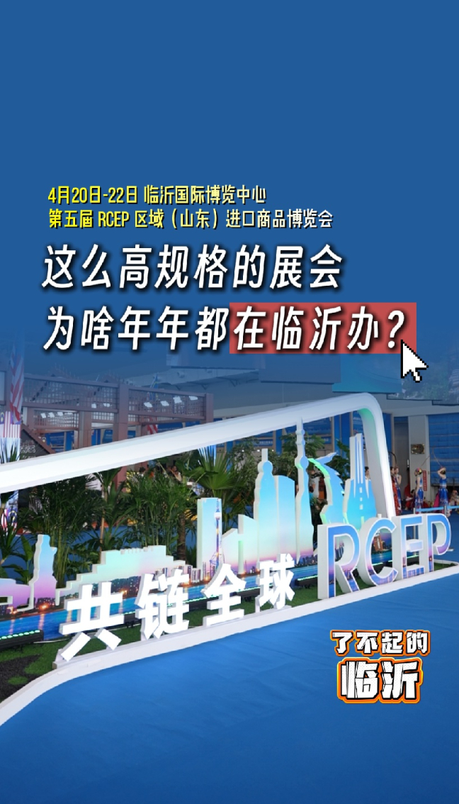 了不起的临沂|这么高规格的展会,为啥年年都在临沂办?琅琊新闻 11:02原创第五届RCEP区域(山东)进口商品博览会将于4月20日-22日在临沂国际博览中心盛大启幕!这么高规格的展会,为啥连续五年都在临沂办?琅琊新闻记者 张金雪