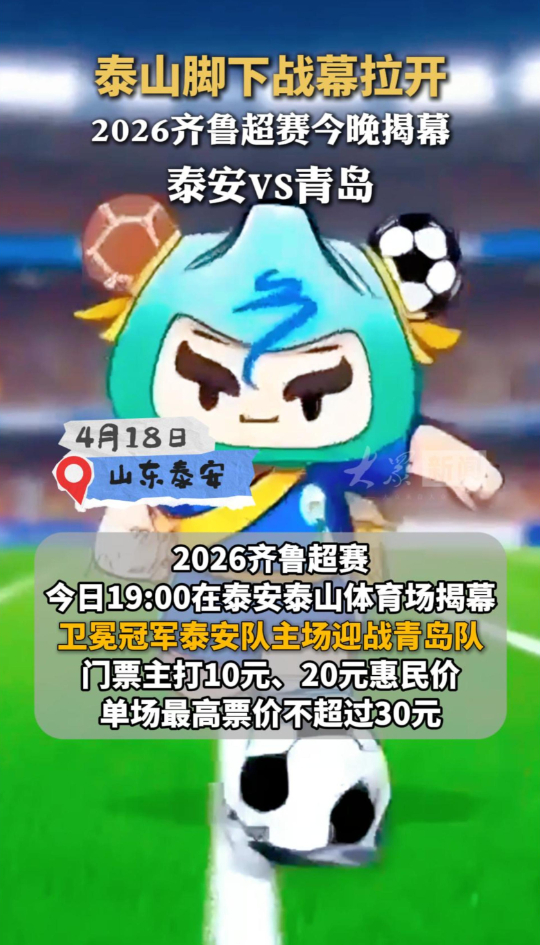 泰山脚下战幕拉开!2026齐鲁超赛今晚揭幕,泰安VS青岛大众新闻 10:55原创2026齐鲁超赛今日19:00在泰安泰山体育场揭幕,卫冕冠军泰安泰山城建队主场迎战青岛青春队。门票主打10元、20元惠民价,单场最高票价不超过30元。(大众新闻记者 荆新年)