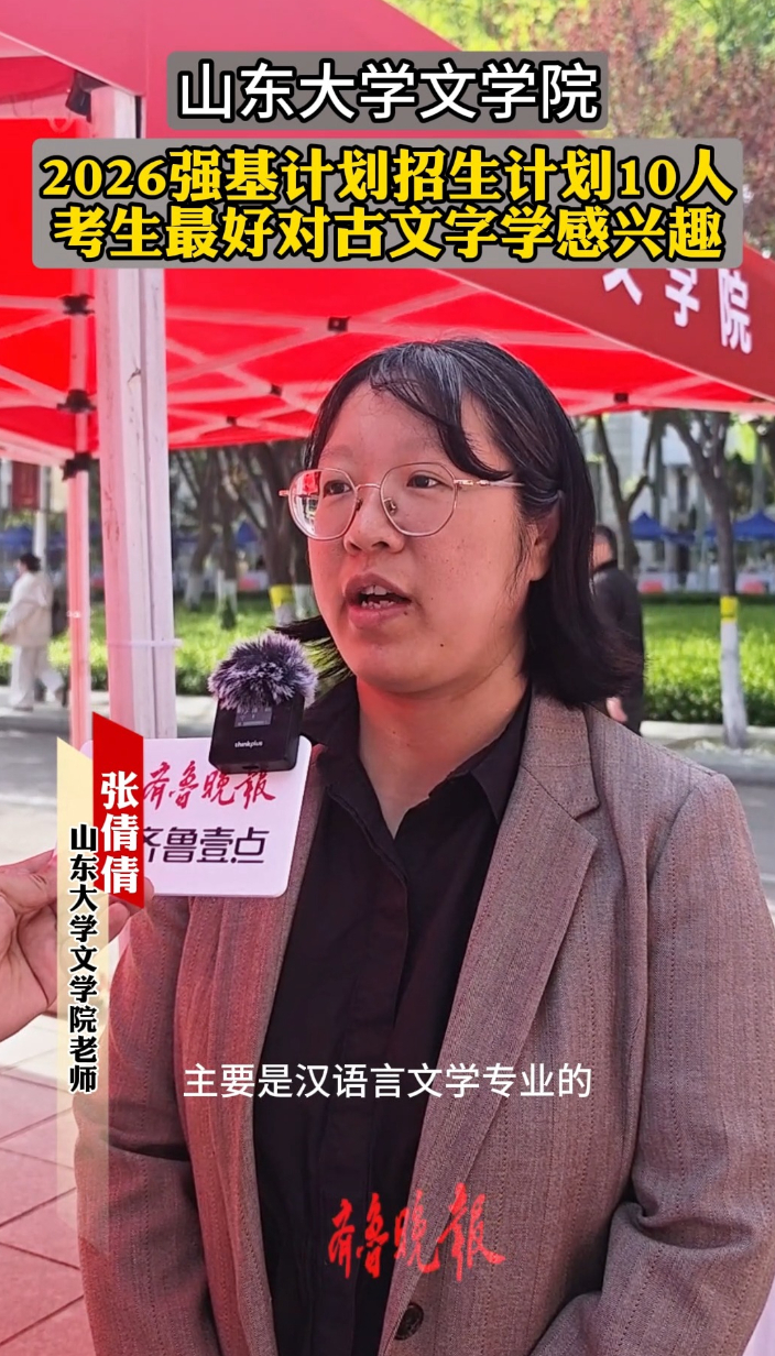 果然视频|山东大学文学强基计划,培养对古文字感兴趣的人才齐鲁晚报·齐鲁壹点客户端 19:34原创4月18日,在2026年山东大学大学节暨强基/综招咨询会上,山东大学文学院老师介绍,今年学院汉语言文学专业继续开展强基计划招生,主要招收对古文字感兴趣的人才。(齐鲁晚报·齐鲁壹点记者 尹明亮 实习生 蔡雅欣)