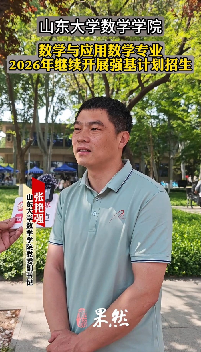 果然视频|山大数学与应用数学专业2026强基计划大约招40人 19:34 原创齐鲁晚报·齐鲁壹点客户端 微信扫码扫码下载客户端4月18日,在2026年山东大学大学节暨强基/综招咨询会上,山东大学数学院老师介绍,今年学院数学与应用数学专业继续面向全国开展强基计划招生。 (齐鲁晚报·齐鲁壹点记者 尹明亮 实习生 蔡雅欣)