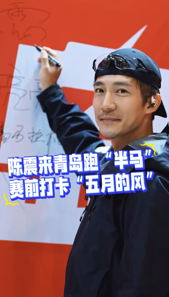 陈震来青岛跑“半马”,赛前打卡“五月的风”