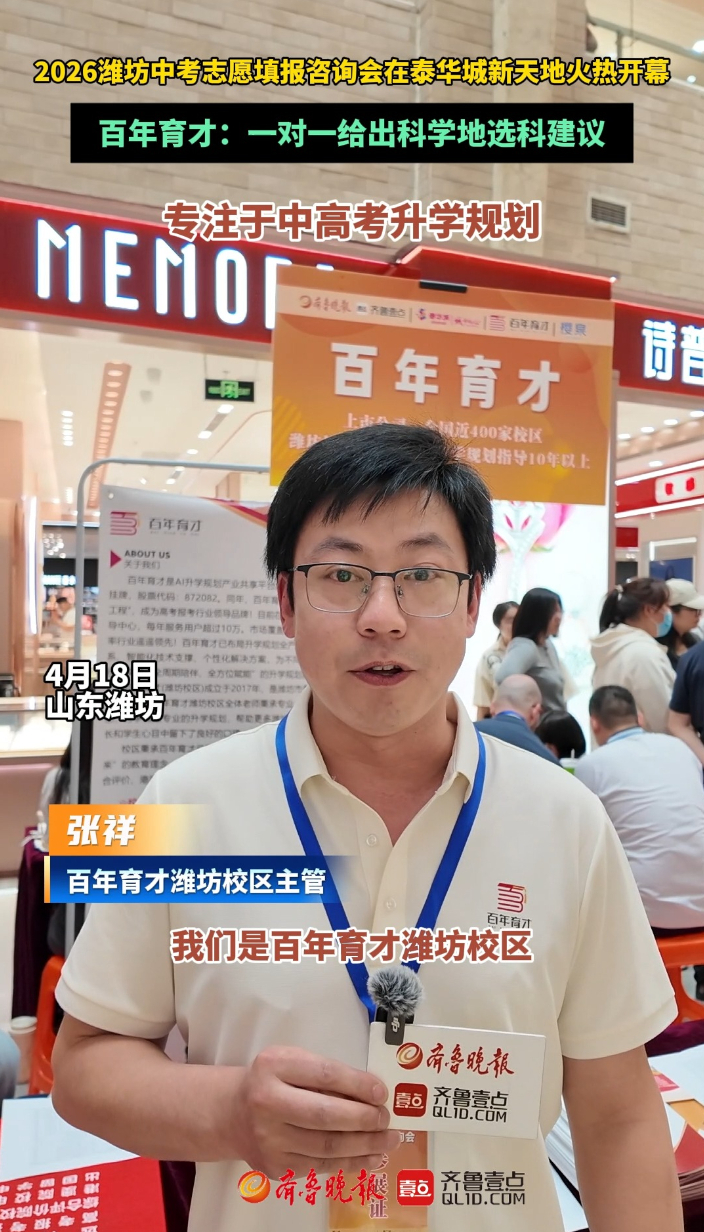 中招会|百年育才:一对一给出科学地选科建议齐鲁晚报·齐鲁壹点客户端 昨天22:35原创4月18日,2026潍坊中考志愿填报咨询会在泰华城新天地火热开幕,公办高中、民办高中、综合高中、职业学校、技工学校的老师,现场面对面与家长沟通,为考生家长答疑解惑。百年育才长期专注于中高考升学规划,为家长和学生一对一给出科学地选科建议。 齐鲁晚报·齐鲁壹点 张晓慧 王钟玉