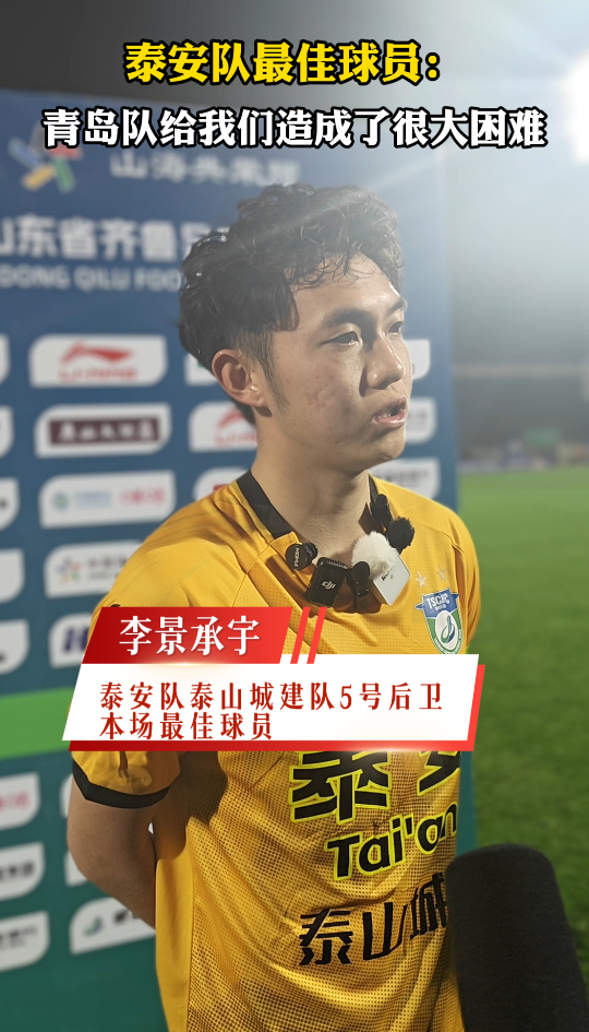 泰安队最佳球员:青岛队给我们造成了很大困难大众新闻客户端 昨天23:02原创4月18日,2026年齐鲁超赛在泰安打响揭幕战。经过90分钟鏖战,泰安泰山城建队2:1战胜青岛青春队。赛后,本场最佳球员李景承宇表示,青岛队在进攻和防守中给泰安队造成了很大困难。(大众新闻记者 荆新年 宫小昀 王琛 王洪涛 李培乐 实习生 王珂)