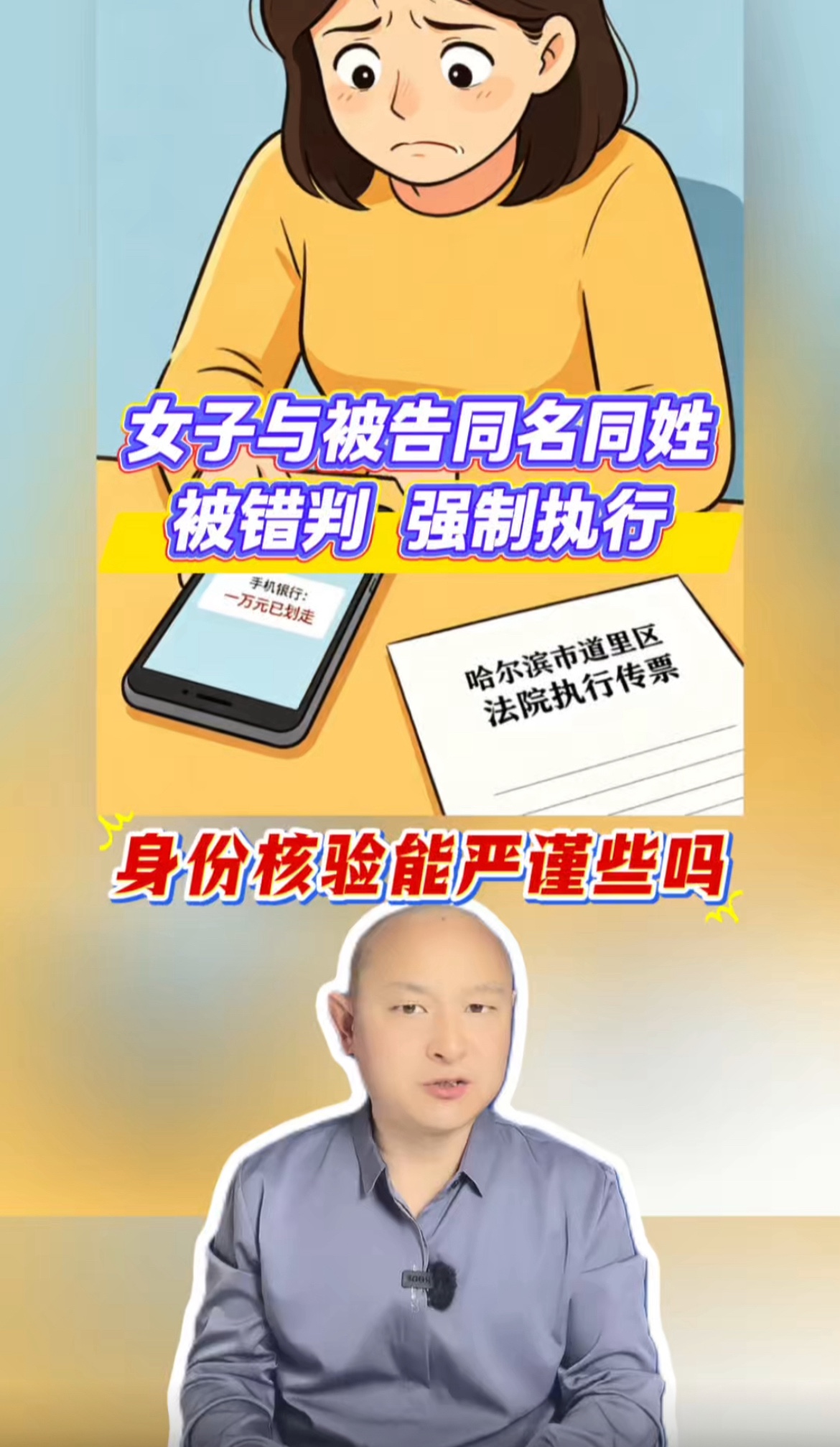 半岛时评| 女子与被告同名同姓,被法院错判强制执行,身份核验能严谨些吗 19:13 原创半岛都市报·半岛新闻客户端 微信扫码扫码下载客户端半岛时评| 女子与被告同名同姓,被法院错判强制执行,身份核验能严谨些吗(半岛全媒体记者 姜瑞胜 宋总业)