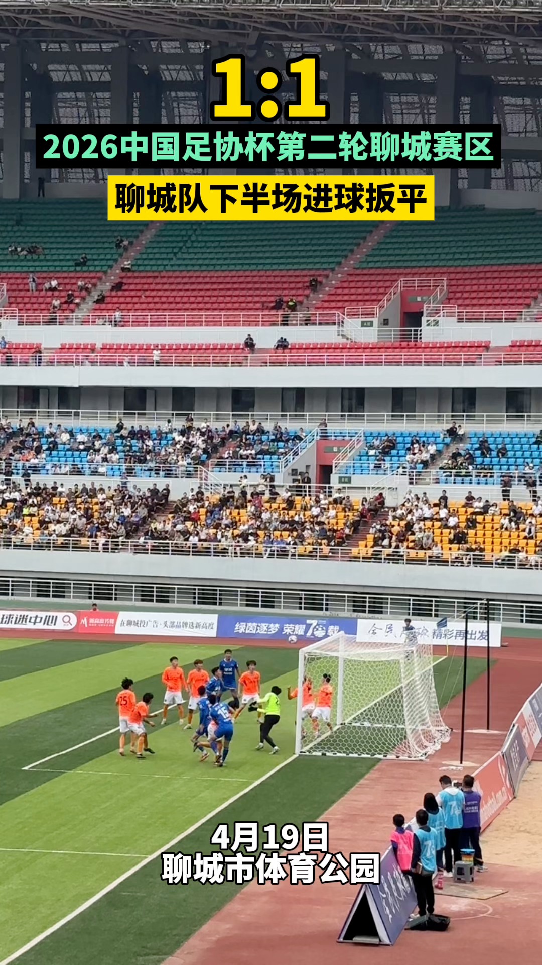 2026中国足协杯聊城赛区直击,第66分钟,聊城队利用角球机会扳平比分