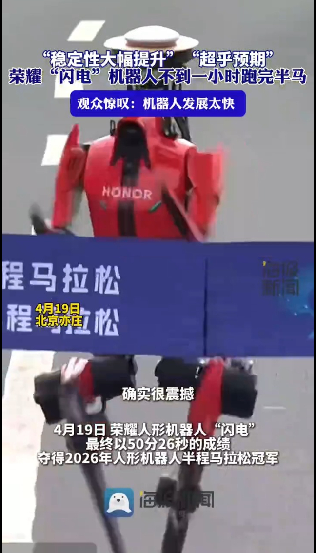 超乎预期!人形机器人半程马拉松跑进1小时,稳定性大幅提升