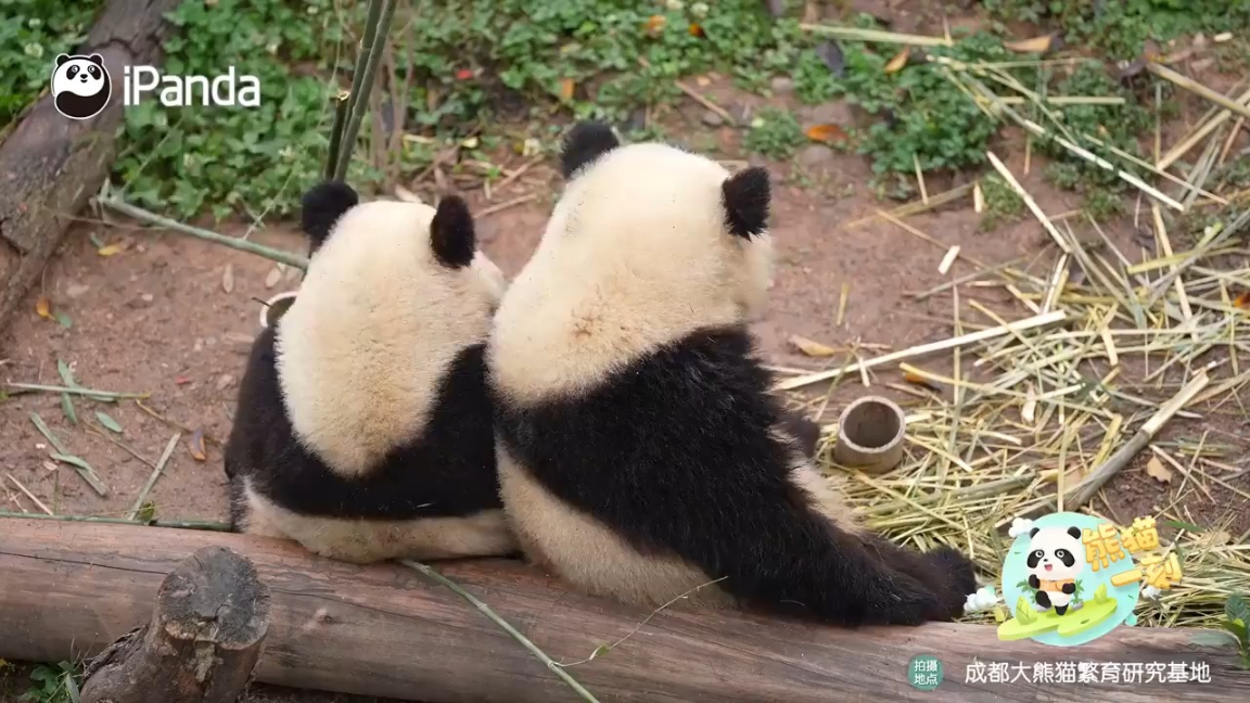 熊友背靠背,竹子更美味。长膘路上肩并肩,神仙友谊人人羡~