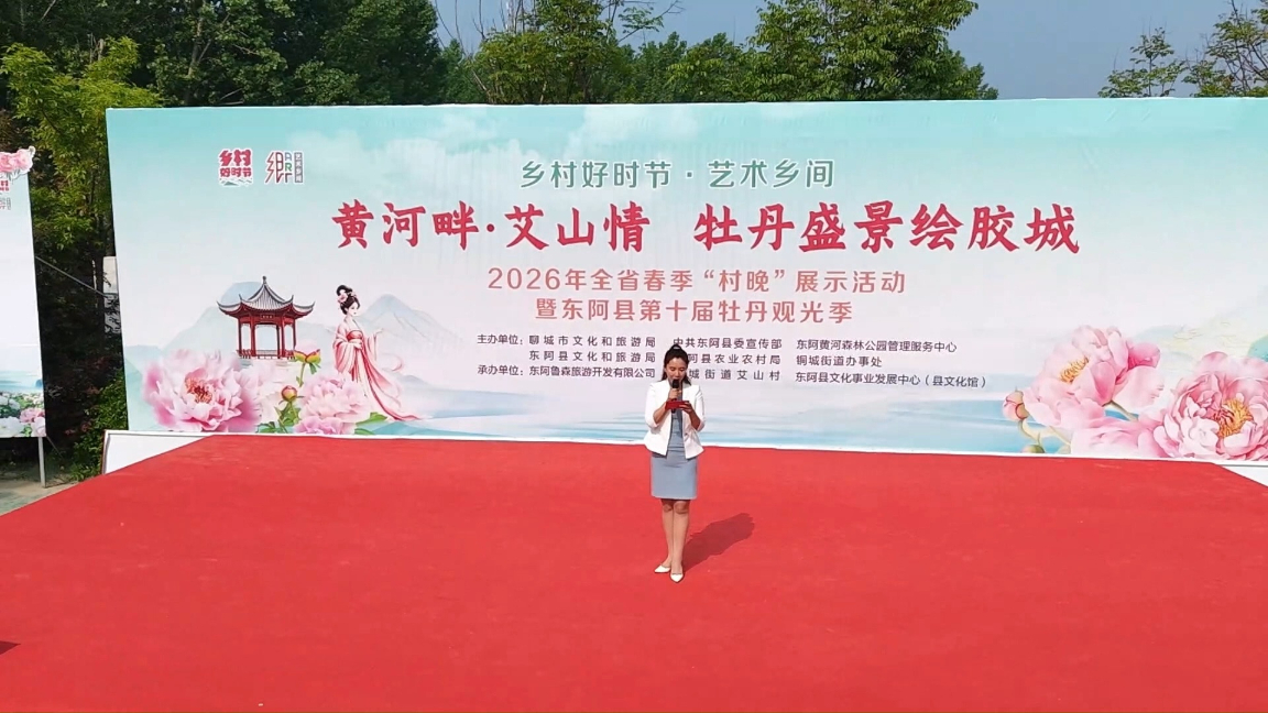 4 月 18 日,“乡村好时节・艺术乡间”2026 年全省春季 “村晚” 展示活动暨东阿县第十届牡丹观光季启动仪式在东阿县铜城街道艾山村文化广场盛大举行。本次活动以 “乡村好时节・艺术乡间”为主题,将省级 “村晚” 文化展示与特色牡丹观光深度融合,以文兴旅、以旅促农、以艺润乡,为乡村振兴注入强劲文旅动能。