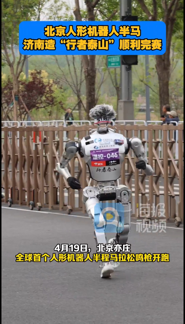 4月19日,北京亦庄,全球首个人形机器人半程马拉松鸣枪开跑。来自全国26个品牌的100余支机器人队伍同场竞技,在21.0975公里的复杂赛道上展开极限挑战。来自济南的“行者泰山”人形机器人首次参赛便凭借出色表现顺利完赛,用稳健的步伐向全国展示了济南智造的硬核实力。