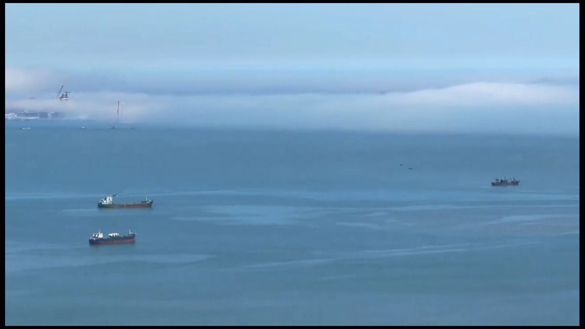 今年入春以来,石岛湾海域已连续出现海市蜃楼奇观,不少居民和游客都拍摄到相关影像。