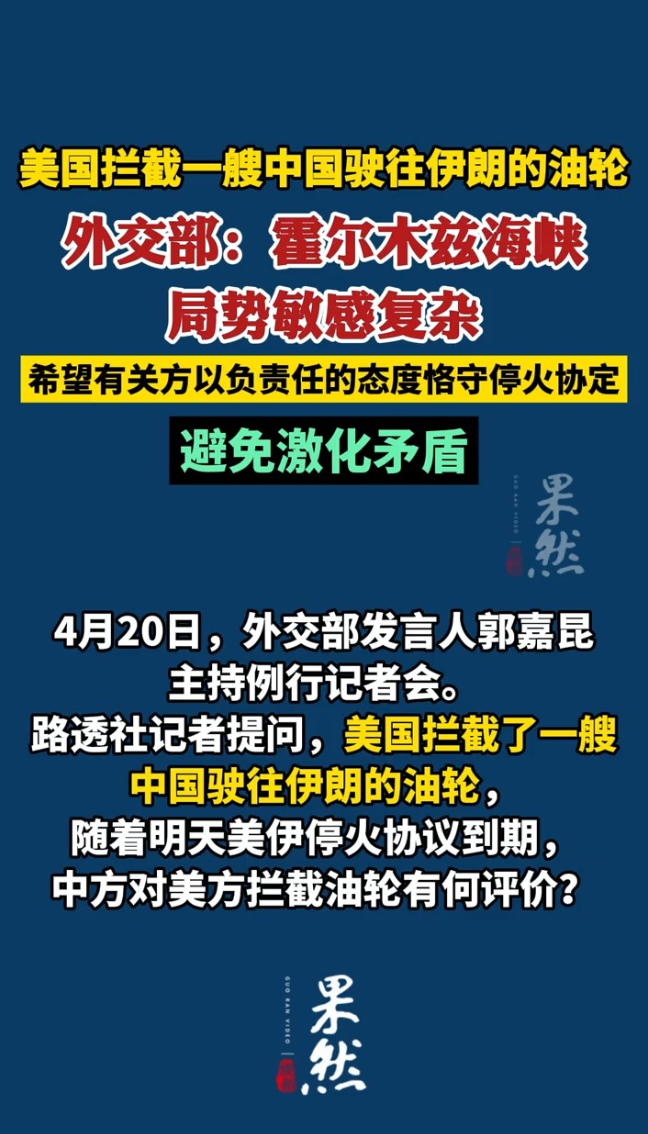 “美国拦截一艘中国驶往伊朗的油轮”,外交部回应