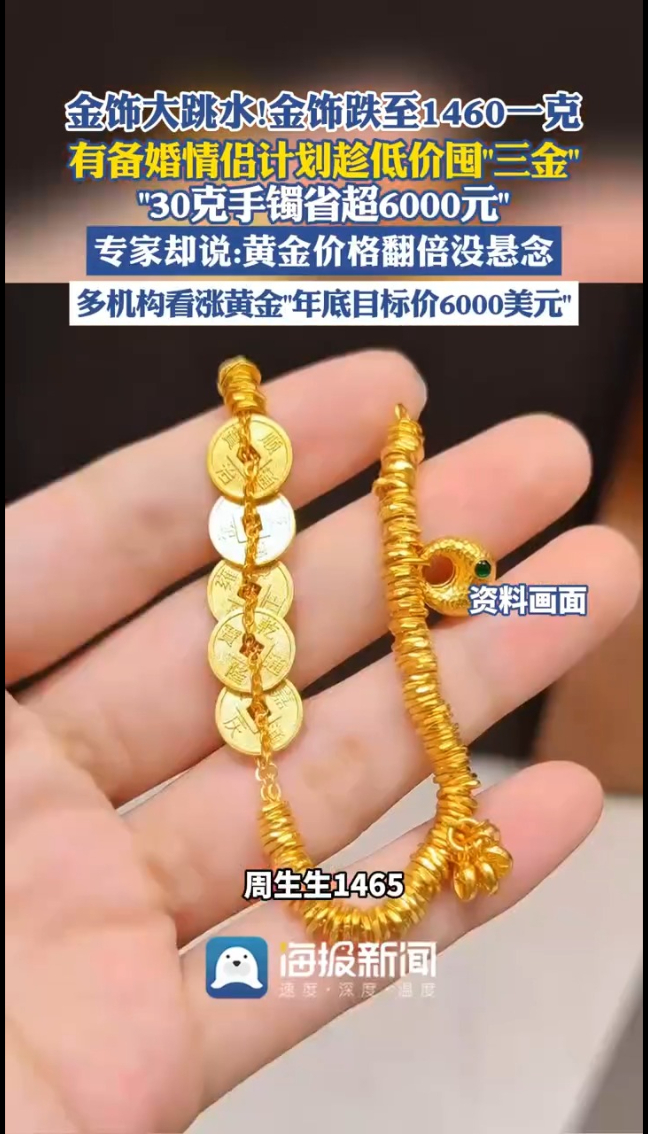 主播说丨金饰大跳水!金饰跌至1460一克 有备婚情侣计划趁低价囤“三金”