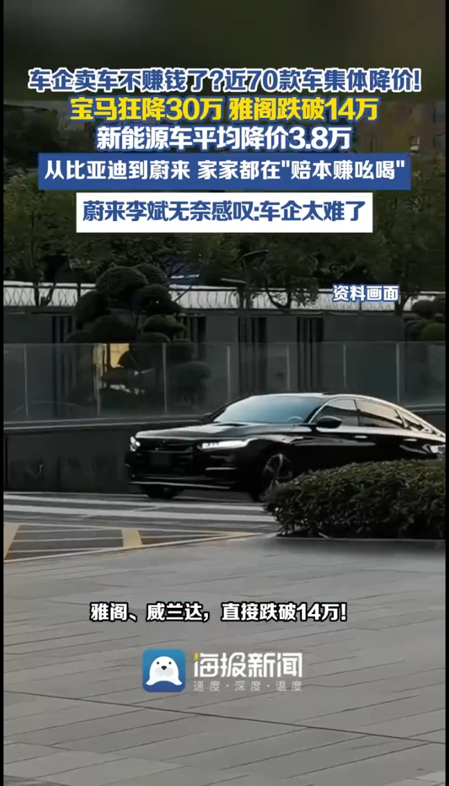 宝马旗舰,狂降30万!雅阁、威兰达,直接跌破14万!全行业近70款车型集体跳水,新能源车平均降价3.8万,燃油车更狠,力度冲到14.3%!