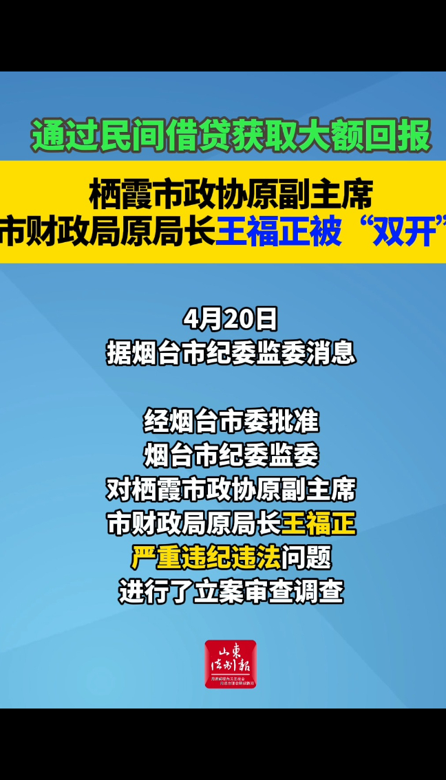 通过民间借贷获取大额回报,栖霞市政协原副主席、市财政局原局长王福正被“双开”