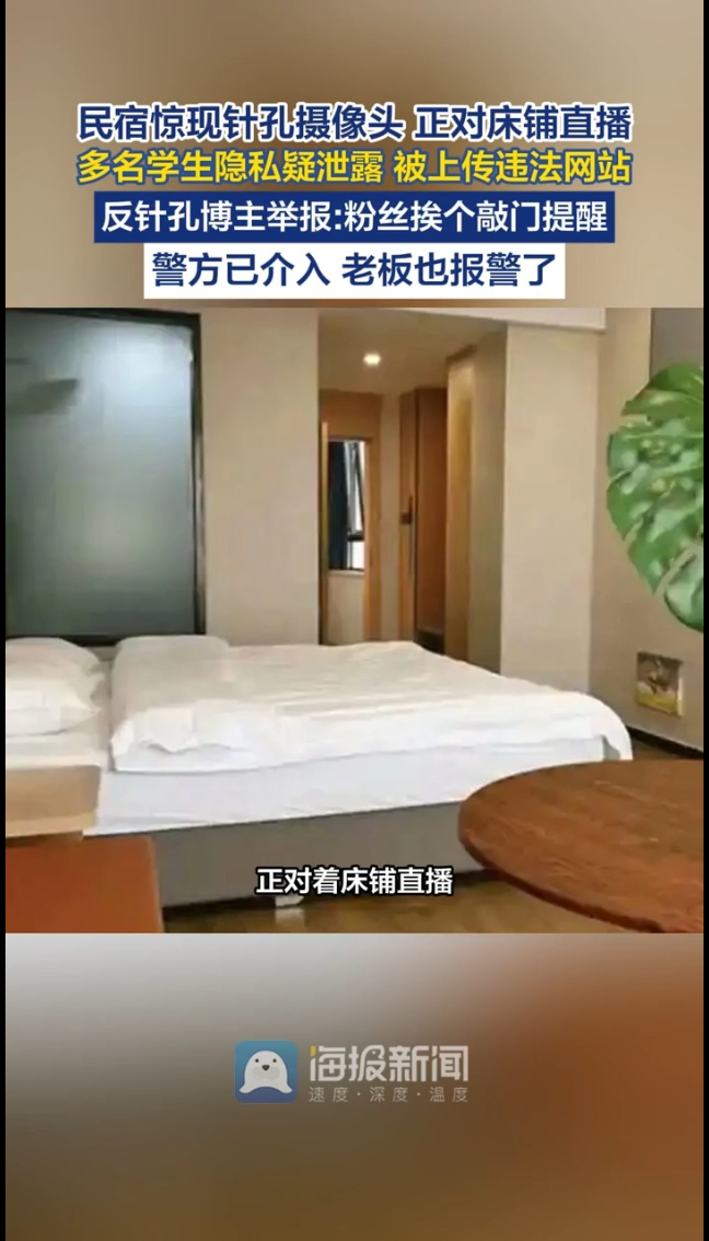 主播说丨民宿惊现针孔摄像头,正对床铺直播,警方已介入,老板也报警了