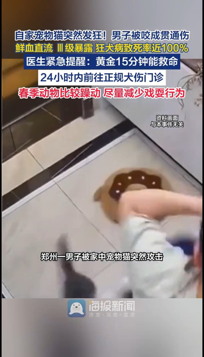 主播说丨自家宠物猫突然发狂!男子被咬成贯通伤医生紧急提醒:黄金15分钟能救命