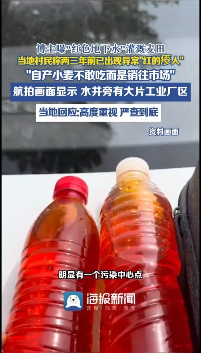 主播说丨博主曝“红色地下水”灌溉麦田,当地村民称两三年前已出现异常“红的瘆人”