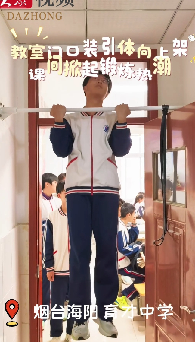 下课铃响,教室门口上演“引体王”争霸大众新闻 昨天20:49原创近日,海阳育才中学在全校41个班级后门上方统一安装引体向上架,每到课间,教学楼走廊便热闹非凡,门上方的引体向上架成了备受欢迎的“课间打卡点”。(大众新闻记者 杨秀萍 通讯员 包明华)